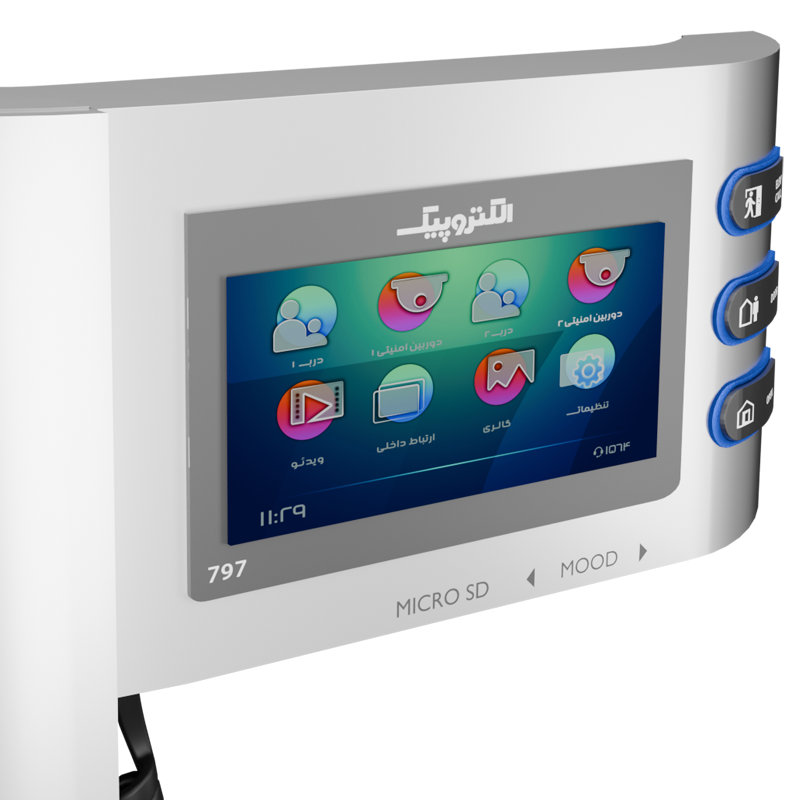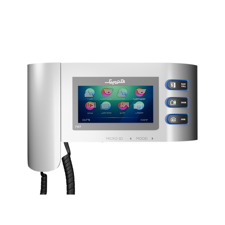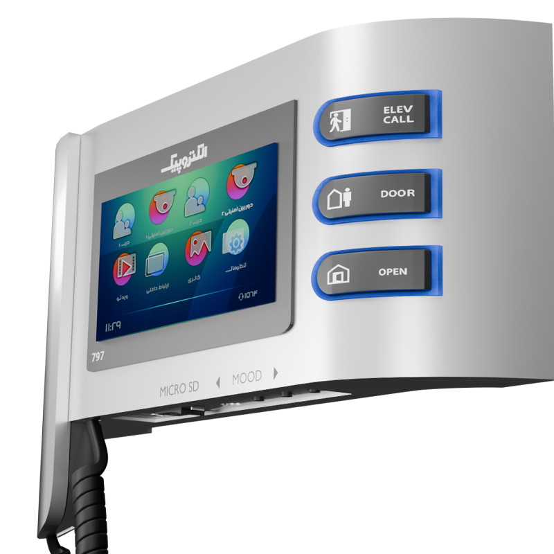 گوشی تصویری ۷۹۷ یکی از مدلهایی است که علاوه بر ظاهری زیبا دارای ویژگیهایی از قبیل، امکان فرمان به آسانسور، دارای حافظه داخلی و امکان نصب کارت حافظه، با امکان پشتیبانی فیلمها با ضبط صدای مراجعهکنندگان ،امکان اتصال به دوربین مداربسته ،امکان تنظیم ملودی و امکان تنظیمات رنگ و روشنایی در تصویر، تنظیمات زمان و تاریخ و قابلیت اتصال به دو پنل را دارد. این ویژگیها محصول گوشی تصویری مدل ۷۹۷ را تبدیل به یک گزینه مناسب برای افرادی کرده که علاوه بر قابلیتهای محصول، به ظاهر آن نیز توجه زیادی دارند نموده است. در تولید بردهای الکترونیکی محصول از فنّاوری SMT با پکیج ۰۶۰۳ استفادهشده است. همچنین فیبر بردهای الکترونیکی از نوع KB۶۱۶۰ است. از جمله قابلیت های این محصول میتوان به قابلیت فراخوانی آسانسور اشاره کرد. این قابلیت این امکان را فراهم می آورد که از درون واحد با فشردن دکمه تعبیه شده بر روی گوشی، کابین آسانسور را به طبقه ای که در آن ساکن هستید منتقل کنید که این امر باعث صرفه جویی در زمان شده و راحتی بیشتری را برای ساکنین منزل فراهم می آورد.